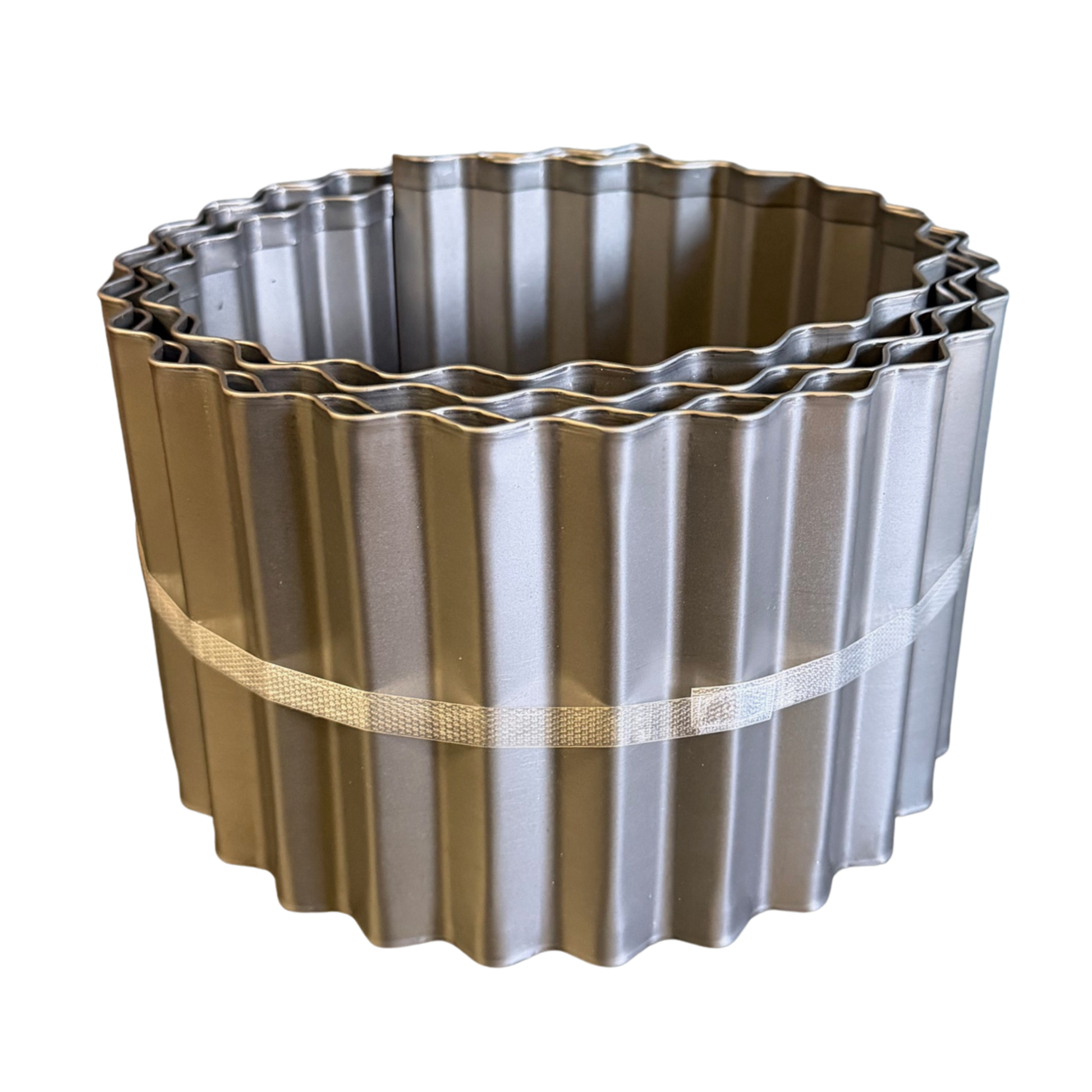 Long strips of steel metal landscape edging with hemmed edges provide style and safety for gardens, lawns and flower beds. Add rustic, industrial contrast with this corrugated metal garden border.